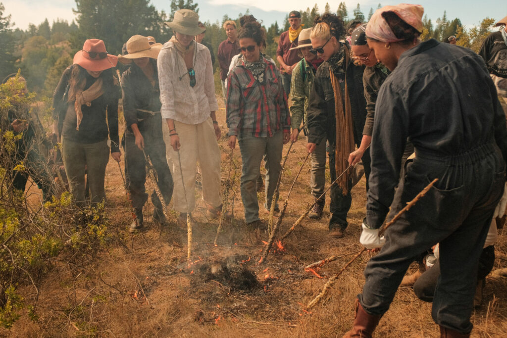 Prescribed fire hosted during ATTUNE at The School for Inclement Weather. Kashia Pomo Territory, Northwest Sonoma County, CA. 2023. Photo by T.K. Sloane.